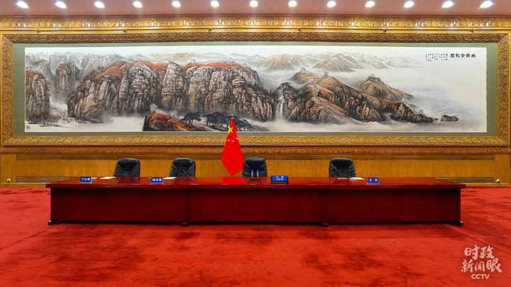 △北京人民大会堂,视频峰会开始前的现场。(总台央视记者凌枫拍摄)