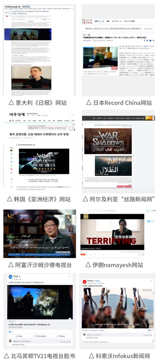 其中,总台新疆反恐纪录片《暗流涌动——中国新疆反恐挑战》完整版及碎片化视频通过44种语言融媒体传播,引发美国、英国、德国、意大利、澳大利亚、加拿大、日本、印度、菲律宾、越南等80多个国家和地区超过700家主流媒体广泛转发转播,形成强有力舆论声势。