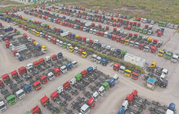 16日,位于永安的中国重汽集团福建海西汽车有限公司,工人们在忙着组装轻、重卡车。这家公司1—3月生产比增22.98%,销售比增43.75%,销售收入比增45.43%,税收比增21.49%。
