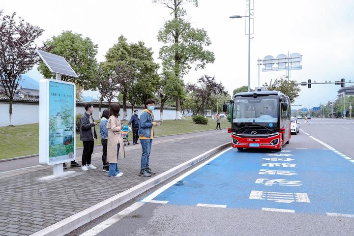 这条自动驾驶公交运营路线途经永川神女湖、农机校、兴龙湖、文理学院东门、观音山公园等站点,双向里程近10公里,首批投放运营的3辆金龙自动驾驶公交车robobus,巡航里程为每小时40-60公里。