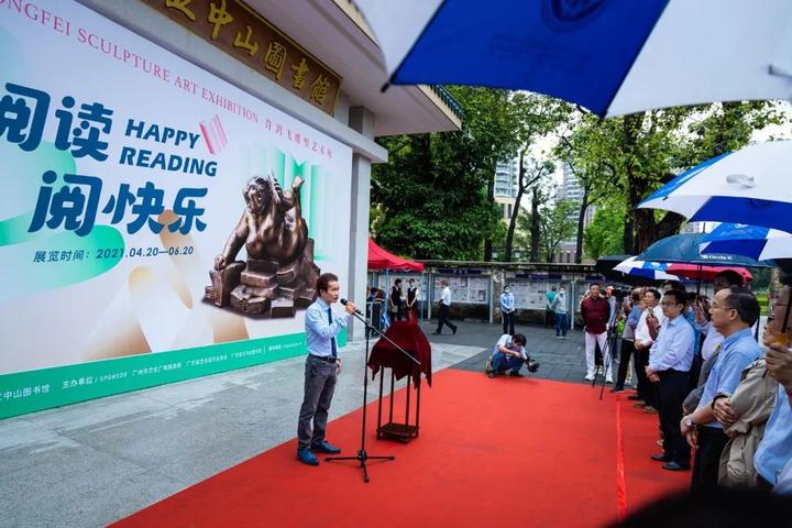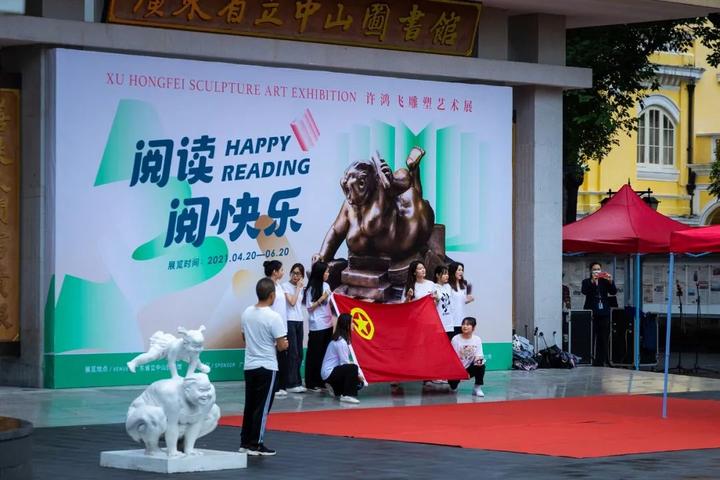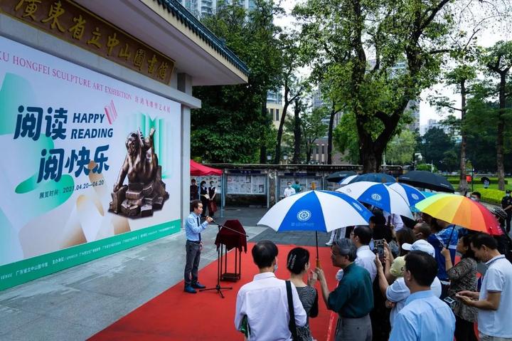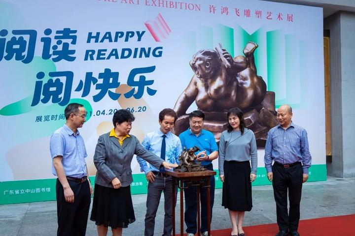 4月28日,由广州市文化广电旅游局、广东省艺术品协会、广东省立中山图书馆共同举办,石磨坊承办的阅读阅快乐——许鸿飞雕塑展开幕仪式在广东省立中山图书馆隆重举行。