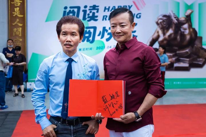 开幕式现场,许鸿飞和参加开幕式的嘉宾共同为雕塑新作“阅读阅快乐”揭幕,并将这件作品捐赠给图书馆。这是“肥女”首次与书籍结合,她以书为伴,憨态可掬,读着读着,忽然顿悟,强烈的快乐让她喜不自胜,手舞足蹈,读书的快乐只有爱书人才懂,而“肥女”读书,不仅带给自己快乐,还能带给别人快乐,图书馆里,有她是再合适不过了!