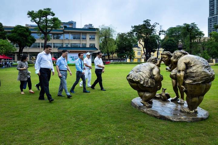开幕式上,许鸿飞还向图书馆捐赠了他举办世界巡展的有关画册,让人们借助“肥女”的视角了解世界各地的风情及当时的展览情况。从2013年起,憨态可掬的“肥女”们就跟着许鸿飞在全世界范围内进行巡展,一路跨越世界五大洲20多个国家和地区42站展览,相继走进悉尼歌剧院广场、巴黎卢浮宫、伦敦市政广场、列宾美术学院等各国知名地标,成为中外文化交流的桥梁,赢得了国际艺术界的广泛认可。