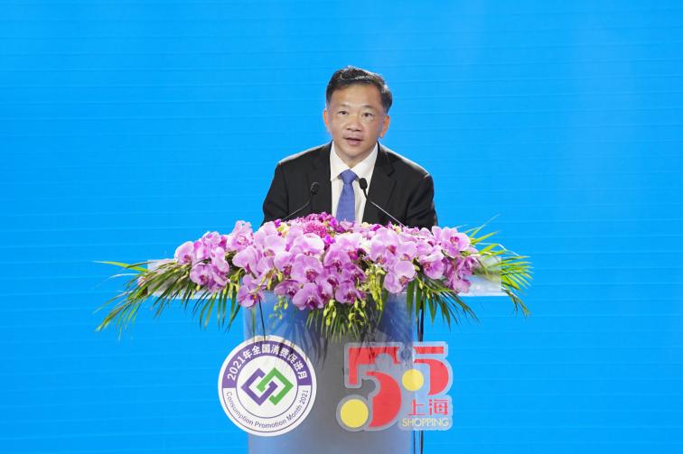 龚正在致辞中指出,2021年全国消费促进月在各大城市同步启动,各项活动同时发力,是一场消费的盛宴。去年首创的上海“五五购物节”,今年规模更大、热点更多、参与面更广。他表示,真诚欢迎全球消费者来上海,体验“全球首发季、全城打折季”的活力,感受上海这座城市的魅力,分享中国和上海消费市场的巨大潜力。