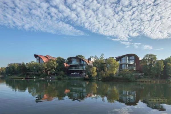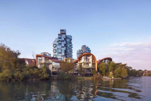 从天空俯瞰会发现,麓湖的湖面并不循规蹈矩,而呈灵动的珊瑚状。这样的设计是为了更好的让水系延伸至城市空间,使建筑、生活、工作与水的关系更亲密。