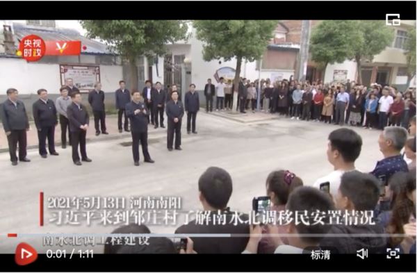 13日下午,习近平总书记来到南水北调工程移民村淅川县邹庄村,了解移民群众生产生活情况。离开村子时,村民们簇拥到路旁,高声向总书记问好。习近平对乡亲们说,南水北调工程建设、运行以及移民安置工作,我一直十分关注。大家现在生活得怎么样,我们很牵挂。他深情地说,你们为了沿线的人民能够喝上好水,舍小家为大家,这是一种伟大的奉献精神,沿线人民、全国人民都应该感谢你们。吃水不忘掘井人,你们就是掘井人。衷心希望父老乡亲们日子过得越来越兴旺,芝麻开花节节高!