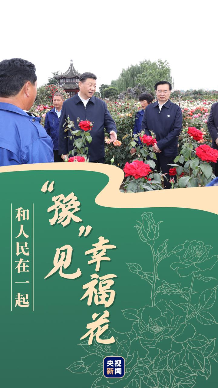 在南阳月季博览园,习近平详细了解当地依托月季等资源优势发展特色产业,带动群众就业等情况。总书记问得仔细,大家答得认真。