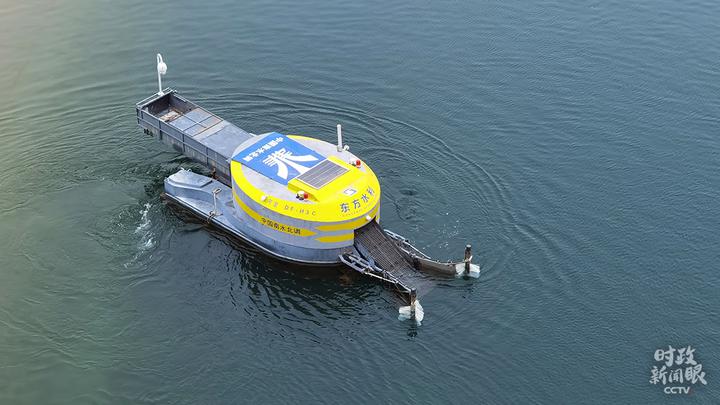 △形似小船的清漂机器人自带摄像头,能自动寻找水面垃圾。(总台央视记者马立飞拍摄)