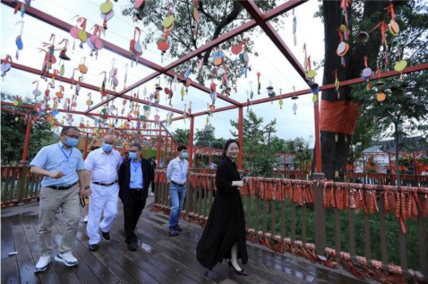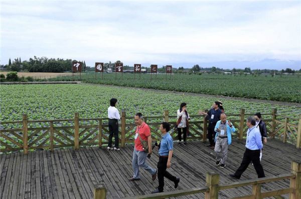 在什邡师古镇红豆村,海外华文媒体代表走进“红豆幸福里”,这是红豆村精心打造的“微田园”文旅目的地。“红豆幸福里”花海五颜六色、一望无际,小火车在花海中穿梭,园中一棵千年树龄的红豆树枝叶茂盛,树的四周,红色祈福丝带随风舞动。依托“百年雪茄·千年红豆”文化资源,红豆村正探索“联股本、建景区、富民生”产业联合体发展模式。