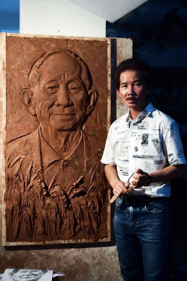 5月22日,“杂交水稻之父”、中国工程院院士获得者袁隆平逝世。怀着对袁老的崇敬之心,广州雕塑院院长许鸿飞创作出了《袁隆平》雕像。雕塑以罕见的浮雕形式创作,袁隆平慈祥而深邃的目光注视前方,眼神饱含对土地的深情和挚爱,胸前风吹稻穗如诉如泣、如闻其声,背景中隐现的农田以诗意和写意的手法表现出袁老长年工作的场景。