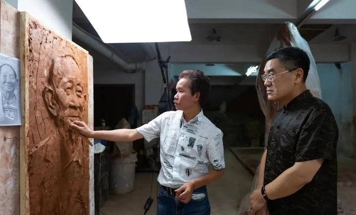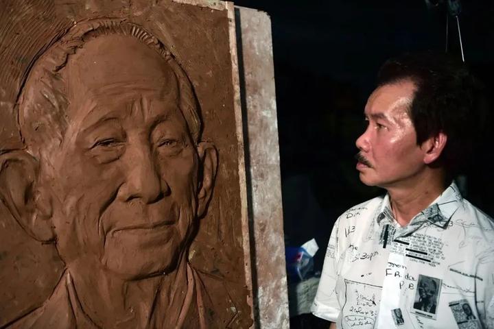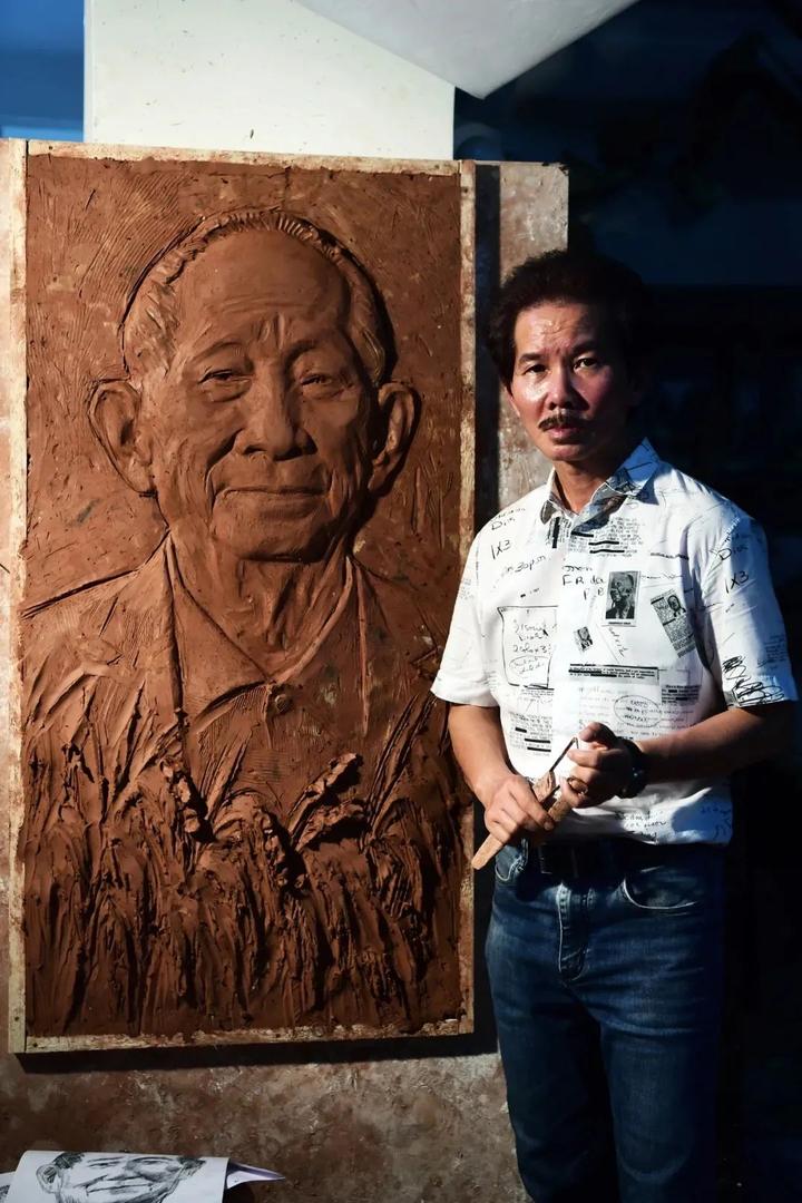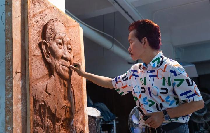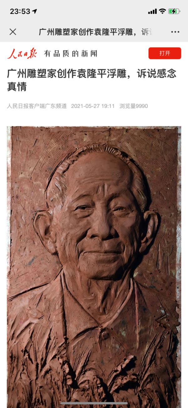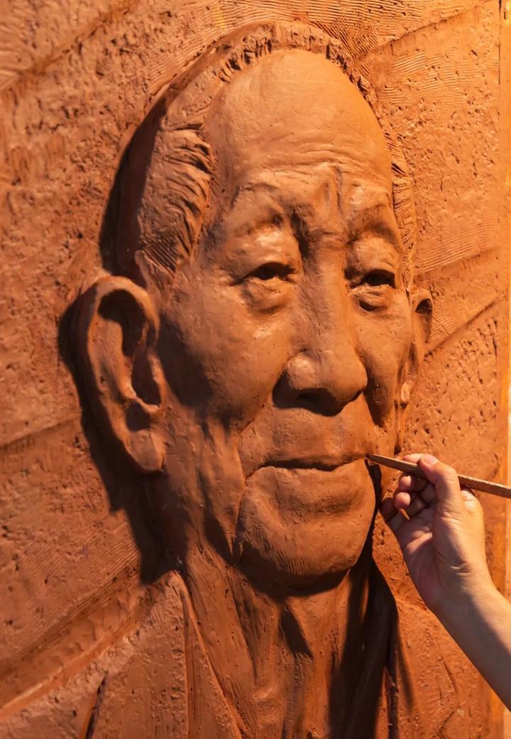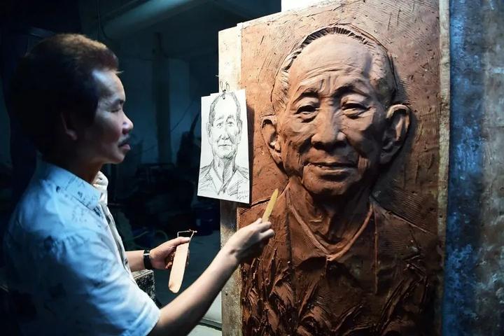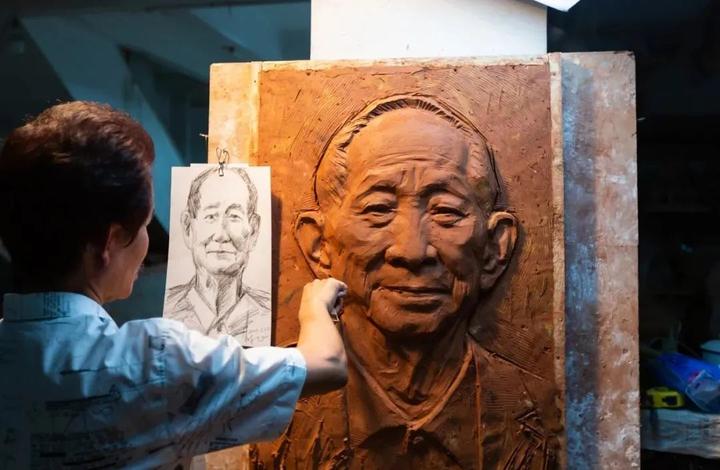 在广州,雕塑家、广州雕塑院院长许鸿飞的心情也久久难以平复,他默默地端详着老人的照片,拿出了自己的纸笔和刻刀,在草稿上绘制草图,对照草图,一件袁老先生头像的浮雕作品泥稿迅速完成。