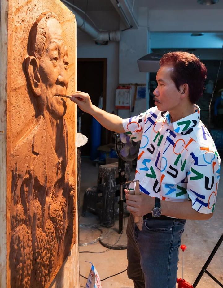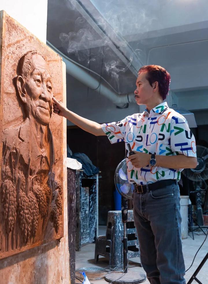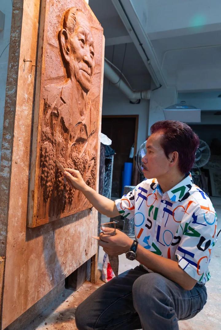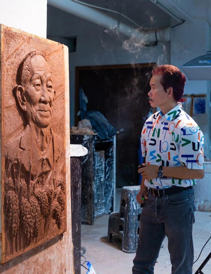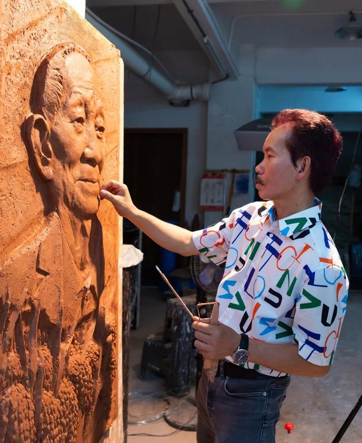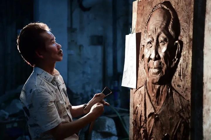 在广州,雕塑家、广州雕塑院院长许鸿飞的心情也久久难以平复,他默默地端详着老人的照片,拿出了自己的纸笔和刻刀,在草稿上绘制草图,对照草图,一件袁老先生头像的浮雕作品泥稿迅速完成。
