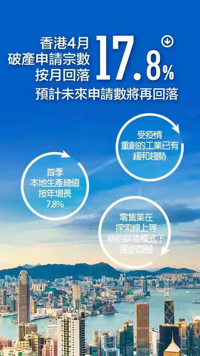 香港4月破产申请宗数按月回落17.8%