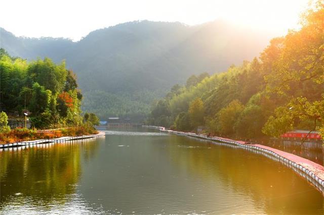 近日,在松溪县花桥乡招沙甲村,夕阳下的水乡渔村休闲渔业基地风景美如画。