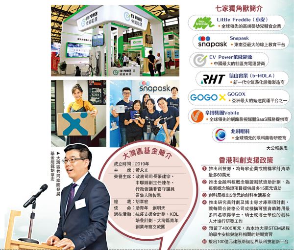 (大公報記者 柴進)香港正在大力推動創科發展。財政司司長陳茂波早前提到,特區政府在創科領域承諾投放的資源超過1100億元。另外,市場亦有不少機構配合政府創科政策,支援創科發展。大灣區共同家園發展基金(簡稱大灣區基金)總裁胡章宏透露,基金已投資了數十個由香港青年創立的企業,並幫助他們對接產業和金融資源,當中7家已成為或有機會成為香港新一批獨角獸。他期望這批成功企業,能鼓舞和帶動更多年輕人投身創新創業。