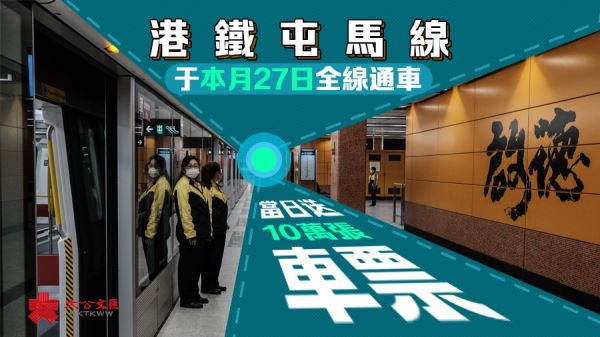 大公文匯全媒體報道,屯馬線全線將於6月27日通車,港鐵行政總裁金澤培今日(4日)表示,為慶祝通車,將會送出10萬張單程車票,詳情會在稍後公布。