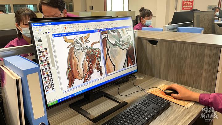 △设计研发部正在修改名为“奋发图强”的藏毯图样。(总台央视记者杨松涛、杨立峰拍摄)
