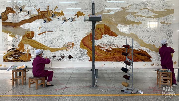 △这幅手工枪刺藏毯以长城为原型,面积接近14平方米。两人同时操作需两个月时间完成。(总台央视记者王鹏飞、杨松涛拍摄)
