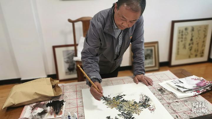 △55岁的魏真盈是社区书画室的国画指导老师。(总台央视记者覃思、马超拍摄)