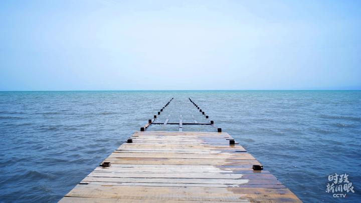 △向湖水延伸的栈桥(总台央视记者彭汉明拍摄)