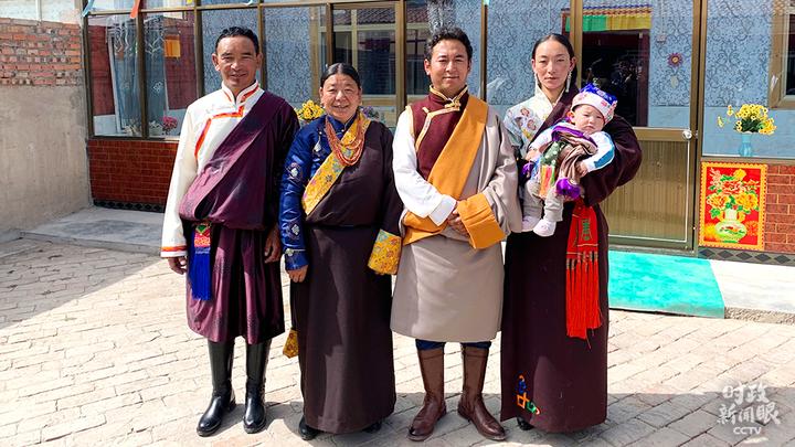 △索南才让(左一)一家当天拍摄的全家福(总台央视记者段德文拍摄)