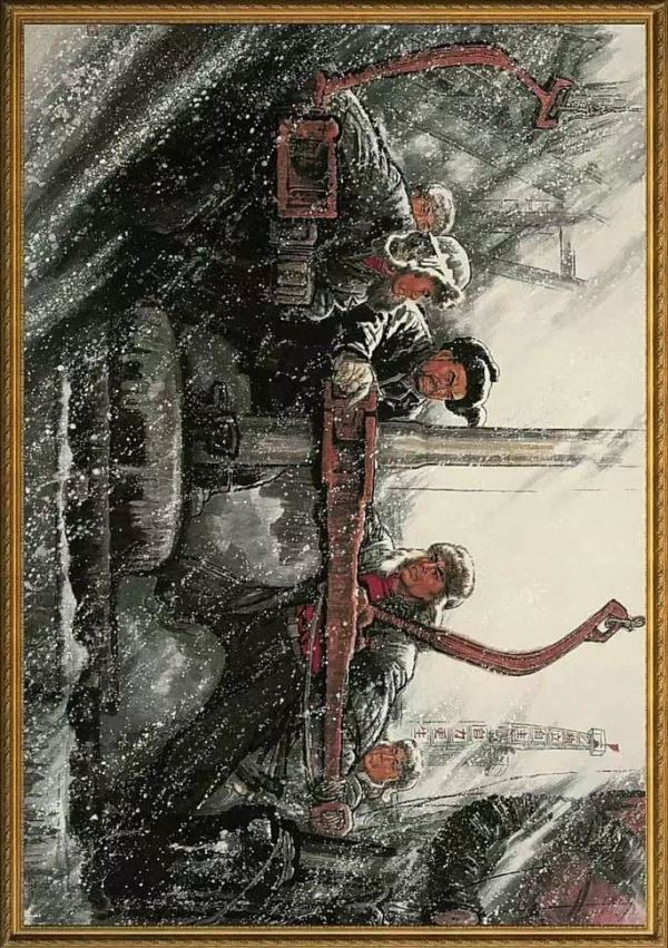 1973年,画家赵志田为表现大庆工人战严寒、斗风雪的忘我劳动精神,创作了国画《大庆工人无冬天》。