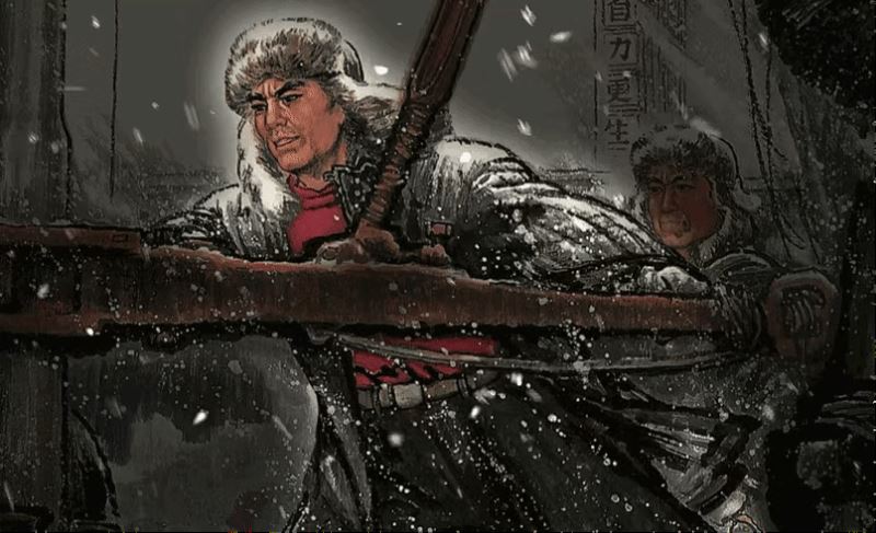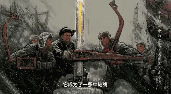 画面中朔风凛冽,大雪纷飞,风雪中,“独立自主,自力更生”的标语赫然挺立,进一步强化了主题。