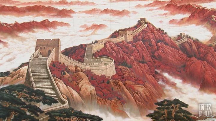 △气势磅礴的长城主题漆画(总台央视记者王策拍摄)