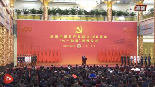 雄伟的人民大会堂,庄严肃穆;璀璨的金色大厅,熠熠生辉。在伟大的中国共产党迎来百年华诞的重要时刻,6月29日,党中央隆重举行“七一勋章”颁授仪式,习近平总书记出席仪式,为“七一勋章”获得者颁发勋章并发表重要讲话。
