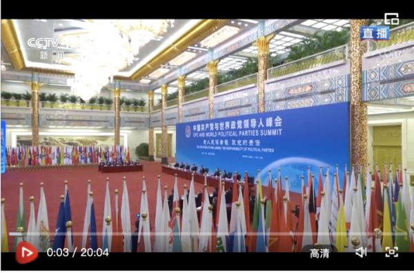 很高兴在中国共产党成立100周年之际,同来自160多个国家的500多个政党和政治组织等领导人、逾万名政党和各界代表共聚“云端”,探讨“为人民谋幸福与政党的责任”这个重大命题。这段时间,170多个国家的600多个政党和政治组织等就中国共产党成立100周年发来1500多封贺电贺信,表达对中国共产党的友好情谊和美好祝愿。我谨代表中国共产党,向大家表示衷心的感谢!