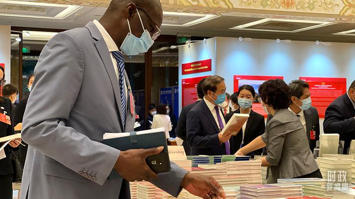△与会外宾翻阅现场书籍。(总台央视记者卢心雨拍摄)