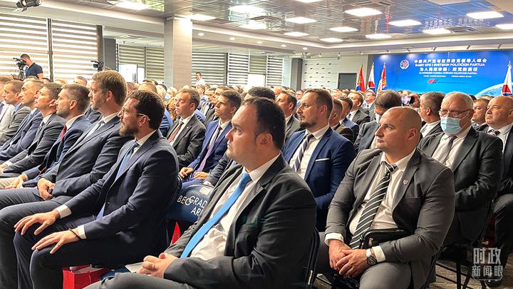 △塞尔维亚首都贝尔格莱德,塞尔维亚前进党总部分会场。(总台记者张颖拍摄)