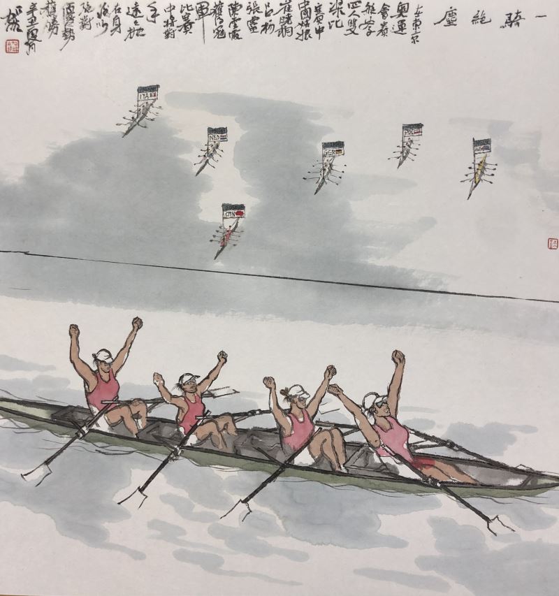 央视网消息:7月28日,中国奥运军团在赛场上再次连夺三金。国家画院美术馆馆长、“为奥运喝彩”写生团团长何加林以画为媒,连作三幅作品,继续绘写中国选手们勇夺金牌的辉煌时刻。