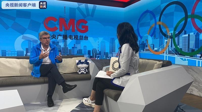 29日,国际奥委会主席巴赫来到中央广播电视总台在东京奥运会国际广播中心(IBC)的演播室,接受总台独家专访。