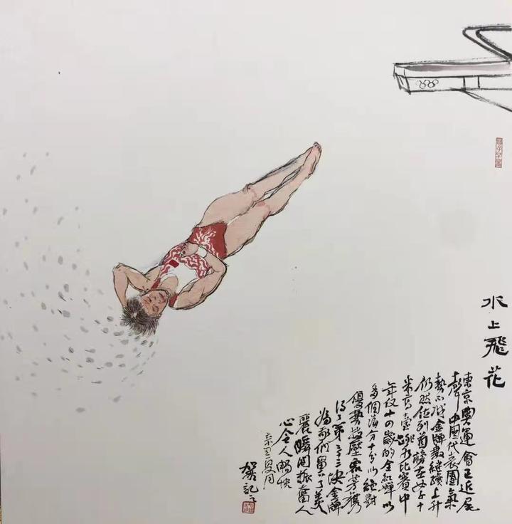 东京奥运会激战正酣,中国军团夺牌之势不减。8月5日夜,著名画家、“为奥运喝彩”艺术写生团团长何加林连绘三幅作品,将我十四岁小将全红婵跳水英姿、女乒团体赛夺冠时刻,以及国际奥委会副主席于再清接受总台专访等场景化作笔端,以画致贺。