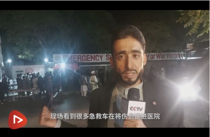 现场的人七手八脚地把伤者从车上抬下来,送上从医院里面飞快推出的担架车。门口的几个持枪警卫在维持秩序,看样子应该不是塔利班的人,因为臂章上印有阿富汗伊斯兰共和国的国旗。他们的眼中,同样是慌乱和惊惧。