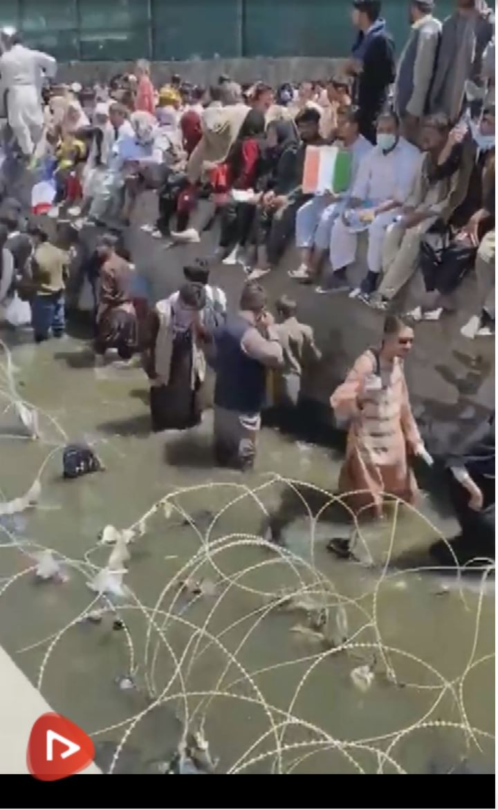 从朋友那里拿到了一段他拍摄的视频,是喀布尔国际机场围墙外的水沟,塔利班进城后我去那里连续采访过两次。在过往的十几天里,阿富汗人们在没膝盖的脏水里一等就是一整天,祈求着围墙内的美军能够帮助他们撤出阿富汗,现在他们却躺在了这条血红的小河中,再也无法离开。