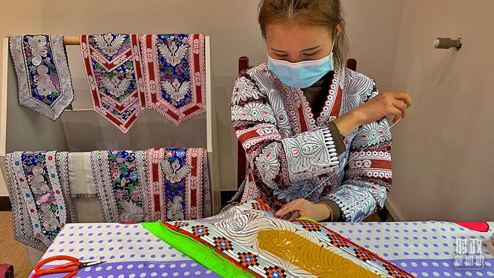△苗绣是贵州化屋村的传统文化,更是推动乡村振兴的特色产业。(总台央视记者段德文拍摄)