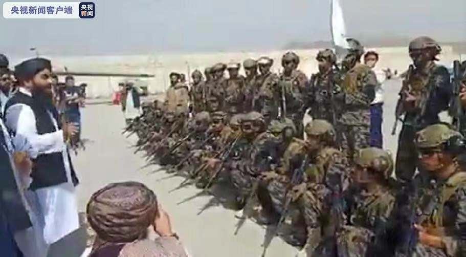 △当地时间31日,塔利班发言人扎比乌拉·穆贾希德进入机场并向塔利班士兵发表讲话