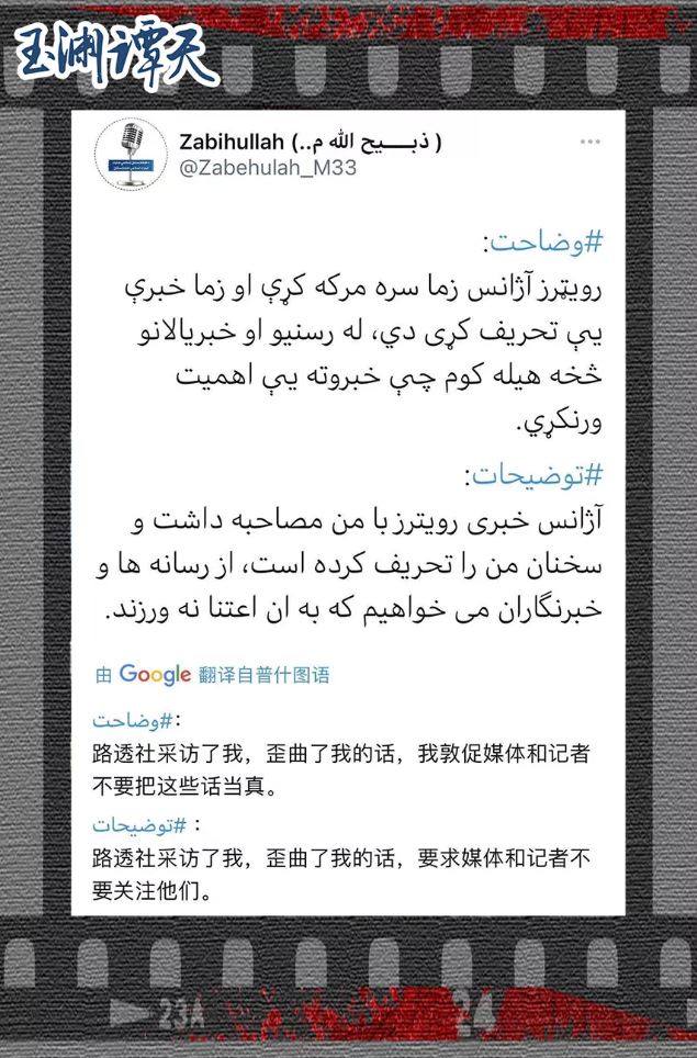 △塔利班发言人穆贾希德推文