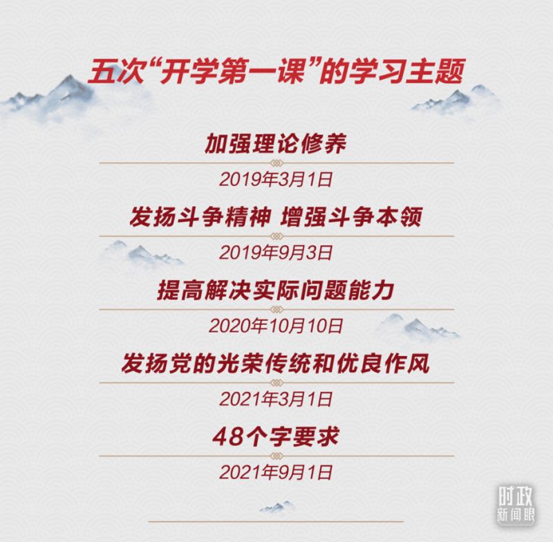 这五堂课听下来,又具有很强的系统性。今年秋季的开学第一课,是“专题课”基础上的“综合课”,可谓“集大成”。总书记对年轻干部提出了48个字的要求,涵盖六大方面。