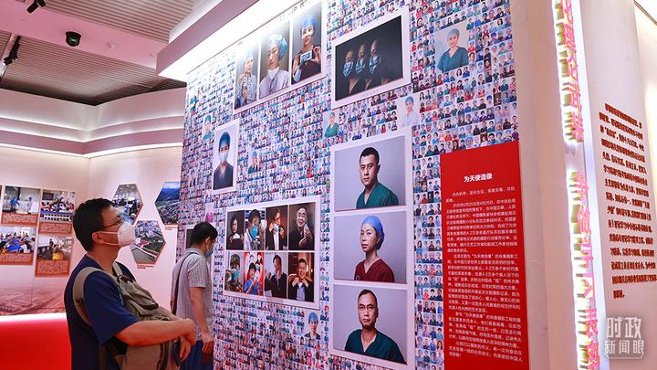△2021年7月,中国国家博物馆,观众在“新时代中央和国家机关党的建设成就巡礼展”上观看“为天使塑像”展板。(图/视觉中国)