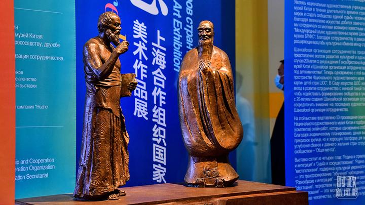 △2021年9月7日,“同一梦想——上海合作组织国家美术作品展”在北京开展。这是中国雕塑家吴为山的作品《神遇——孔子与苏格拉底的对话》。(图/视觉中国)