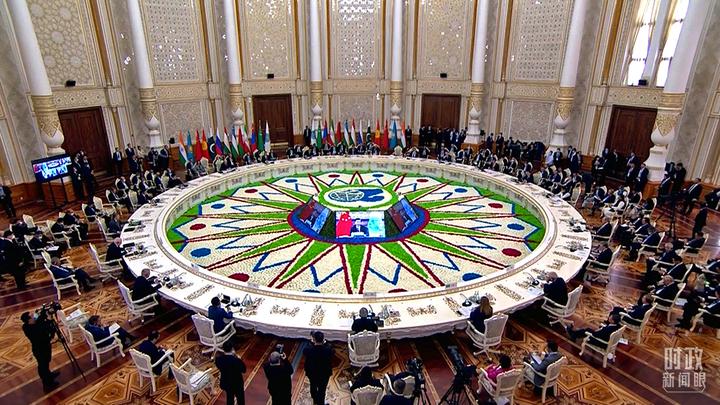 △塔吉克斯坦总统拉赫蒙主持该场峰会。