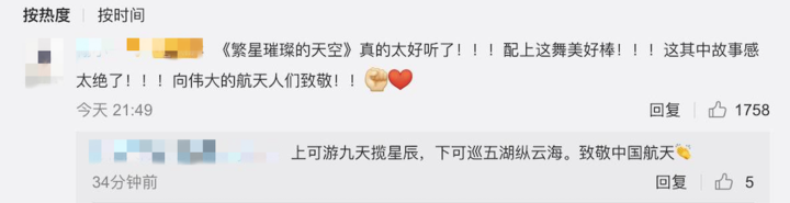 节目设置上,今年中秋晚会主线脉络清晰,以国家站位升华主题,用家国情怀为内核唤起了全球华人情感共鸣。一曲交响乐版的《觉醒年代》主题曲让网友听得热血澎湃,有网友激动地留言说“先辈们,你们看,我们的生活正是《觉醒年代》最好的续集! ”