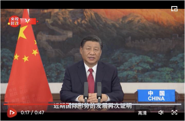 国家主席习近平21日在北京以视频方式出席第七十六届联合国大会一般性辩论并发表题为《坚定信心 共克时艰 共建更加美好的世界》的重要讲话。