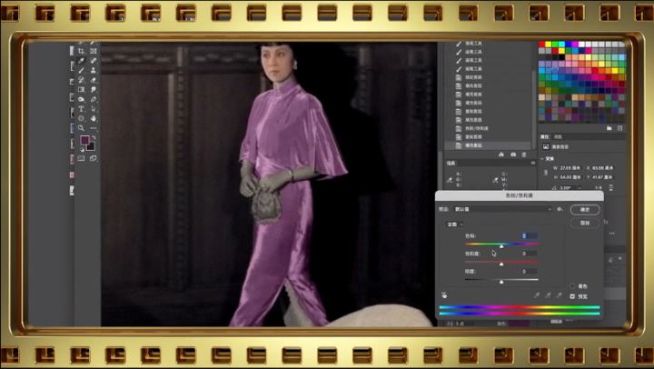 而为了让影片中出现的服装、道具、老上海外景等视觉元素达到最为精准的颜色,修复师们一面寻访服装、文史领域专家,一面搜集海量的图片和史料进行参考。一帧一帧比对,一点一点调整,最终调整到最为还原真实的颜色。
