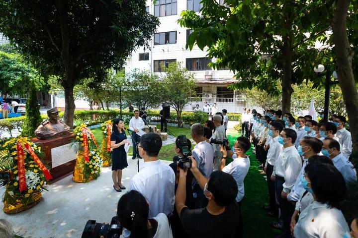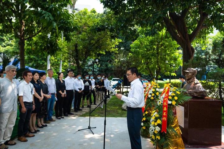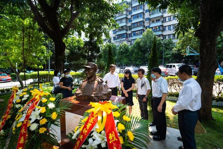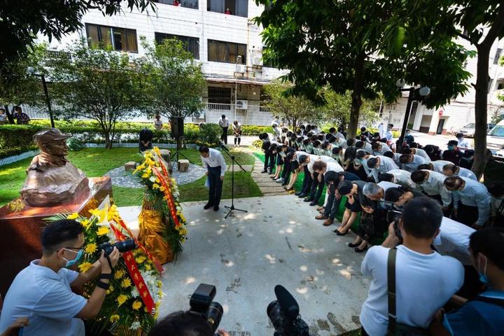 9月30日是第八个烈士纪念日,抗疫英雄王烁烈士的雕像在广东省职业病防治院王烁纪念园落成揭幕。省卫生健康委党组成员、副主任周紫霄,王烁烈士亲属及生前好友等人出席了落成仪式。尽管9月28日和29日连续在中山、成都举办展览,一路劳顿,雕塑创作人,全国政协委员、广州雕塑院院长许鸿飞仍然及时回到广州,参加了昨天的王烁烈士雕像落成揭幕仪式。