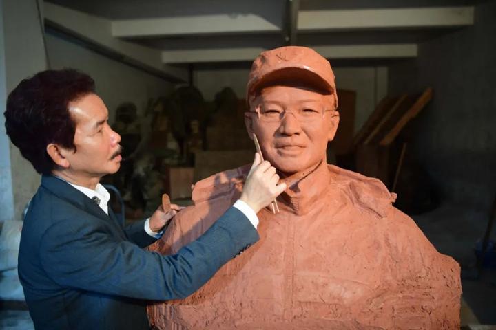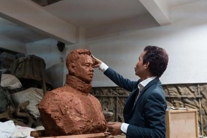许鸿飞给大家介绍了雕塑的创作情况。王烁烈士的事迹让他想起一部阿尔巴尼亚电影《第八个是铜像》,受此启发,他创作了王烁烈士的雕像,希望王烁烈士的音容笑貌作为战胜疫情的标志长留人间,“王烁精神”长存!