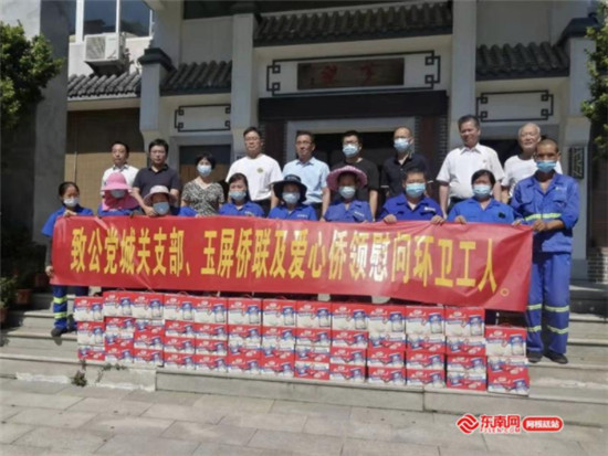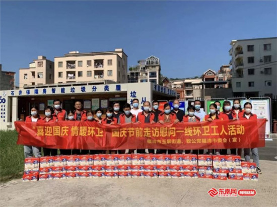 东南网9月30日讯(本网特约通讯员 郑松波)为关心关爱坚守一线的环卫工人,9月29日上午,致公党福清市委会、福清市玉屏街道及阿根廷侨胞联合开展“喜迎国庆 情暖环卫”国庆节前走访慰问一线环卫工人活动。阿根廷福清社团联合会林水钦、阿根廷三福企业商会吴章耕、阿根廷福清同乡会陈世金捐赠100箱花生牛奶作为本次活动的慰问品。